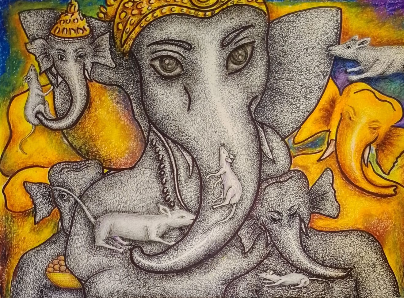 Images tagged "midium-mixed-midium-on-cartiz-paper-titel-lord-ganesha-with-his-friends-price-rs-8000-size-16×10"